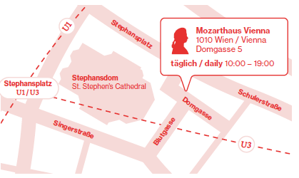U1, U3 oder Buslinie 1A, 2A, 3A bis Haltestelle Stephansplatz, dann zu Fuß weiter
