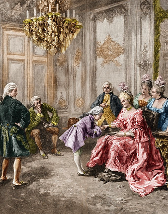 Als Künstler ist Mozart oft zum Essen eingeladen: In kaiserlichem, fürstlichem, adeligem, groß- und kleinbürgerlichem Ambiente, daheim wie auf Reisen. Er isst nicht immer großartig, auf Reisen manchmal sogar erbärmlich.